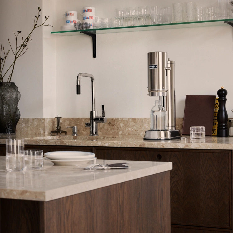 Carbonator Pro från det svenska varumärket Aarke är en elegant och minimalistisk kolsyremaskin. Designad med en Push-to-Lock-lösning kan maskinen smidigt användas med hjälp av endast en hand. Carbonator Pro är tillverkad i polerat rostfritt stål och kommer i utförandet Steel men finns även i Matte Black som har en lite grövre textur. Kolsyremaskinen är sladdfri, ingen elektricitet behövs. Carbonator Pro är kompatibel med kolsyrepatroner från Sodastream (utom Sodastream Quick Connect), AGA, Linde och andra standardpatroner godkända för kolsyremaskiner, med undantag för Australien & Nya Zeeland.