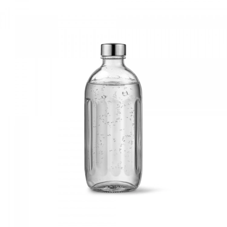 Tillsammans med kolsyremaskinen medföljer glasflaskan Aarke Glasflaska Pro som rymmer 80 cl (70 cl upp till flaskans markering) och tål diskmaskin. Glasflaskan finns även att köpa hos oss separat. Gascylinder ingår ej.
