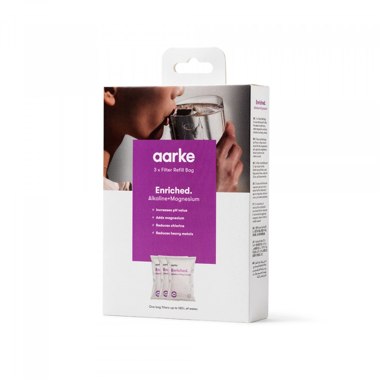 Filter Refill från svenska Aarke är särskilt skapat för vattenfiltreringskannan Aarke Purifier. Det är filtergranulat som varumärket har tagit fram i samarbete med ett av världens ledande företag inom vattenteknik – BWT. Filtergranulaten lyfter vanligt kranvatten och ger en ännu bättre smakupplevelse. De kommer i två olika sorter, Pure och Enriched. Pure reducerar oönskade ämnen och förvandlar kranvattnet till en renare smakupplevelse. Det filtrerade vattnet är idealiskt att kolsyra eller att brygga en perfekt kopp kaffe eller te på. Enriched reducerar oönskade ämnen, tillsätter magnesium och omvandlar kranvattnet till alkaliskt vatten.