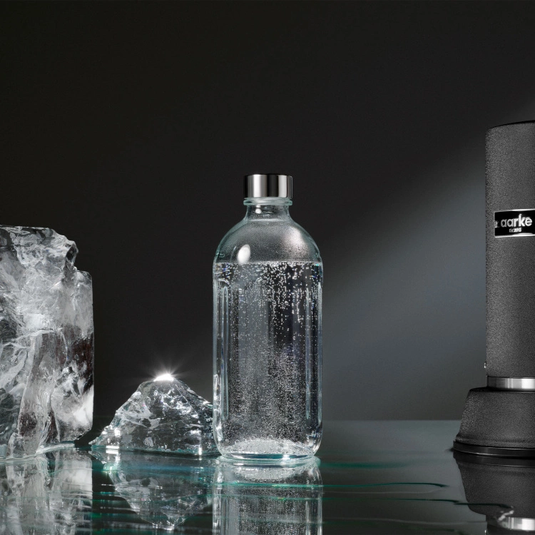 Aarke Glasflaska Pro från det svenska varumärket Aarke är särskilt designad för att passa perfekt tillsammans med kolsyremaskinen Carbonator Pro. Med sina rena och mjuka linjer har den ett stilrent och minimalistiskt designuttryck. Flaskan är tillverkad i glas samt korken i rostfritt stål och silikon. Den fungerar utmärkt att diskas i diskmaskin. Glasflaskan rymmer 80 cl.