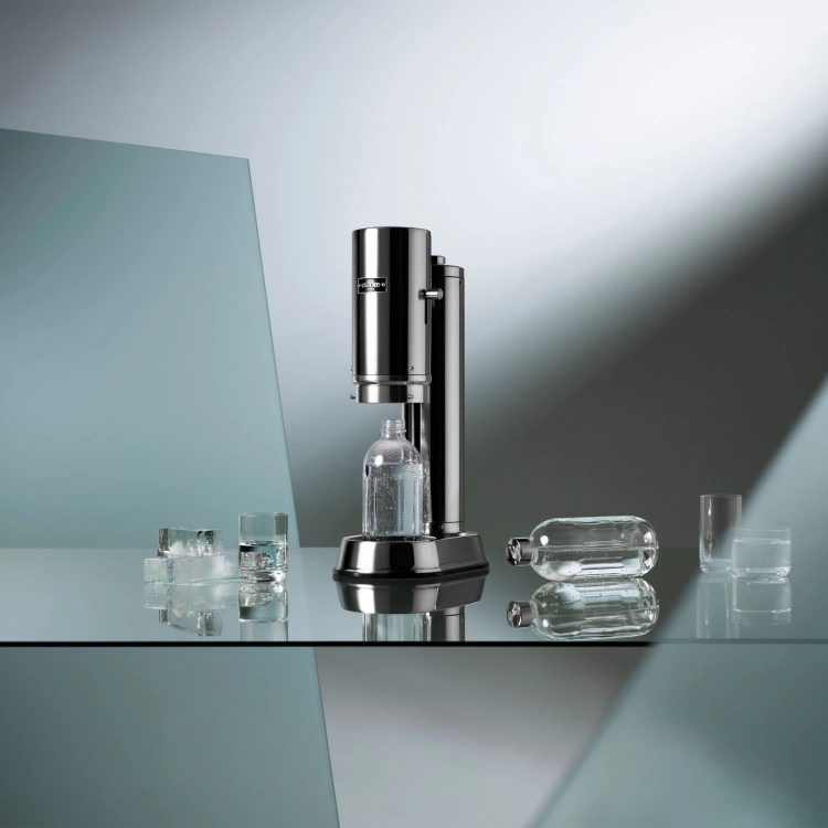 Carbonator Pro är en elegant kolsyremaskin designad med en Push-to-Lock-lösning som gör att den smidigt kan användas med endast en hand. Kolsyremaskinen är tillverkad i polerat rostfritt stål och finns i två olika stilrena utföranden, stål och mattsvart.