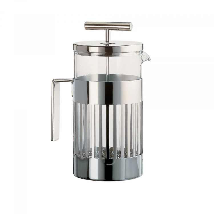 Press Filter Kaffepress är designad av Aldo Rossi för det italienska varumärket Alessi. Den stilrena kaffepressen består av rostfritt stål och värmetåligt glas. Den är 72 cl vilket gör att den rymmer 8 koppar. Kaffepressen gör det enkelt att dricka kaffe, det är bara att hälla kokande vatten direkt över kaffebönorna så filtreras kaffet genom en sil. Press Filter passar även utmärkt att använda för att filtrera te. Formgivaren Aldo Rossi föddes 1931 i Milan och anses som en av världens största italienska arkitekter på 1900-talet.