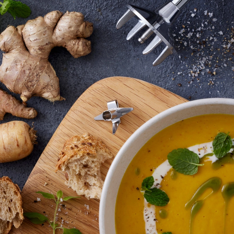 Det praktiska köksredskapet är utrustad med en energisnål växelströmsmotor och en rotation med turboalternativ på 15000 rpm, som kan vispa ihop vilken sås du kan tänka dig. Samtidigt som den är ljuddämpad för att ge ifrån sig så lite ljud som möjligt. Stavmixer Cordless Plus hjälper dig i köket med allt från att hacka frukt och grönsaker till att göra släta såser och soppor. Du laddar din mixer enkelt tack vare dess tillhörande laddningsstation.