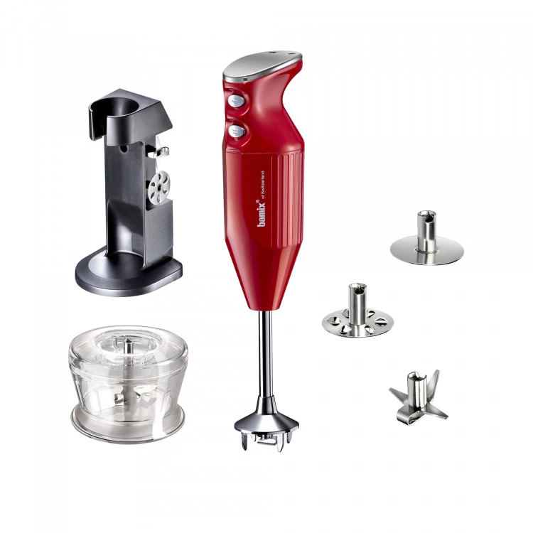 Stavmixer Deluxe är en kraftfull stavmixer från det schweiziska varumärket Bamix. Den lyxiga Stavmixern är utrustad med en växelströmsmotor med två hastigheter, samtidigt som den är dämpad för att ge ifrån sig så lite ljud som möjligt. Alla produkter från Bamix är tillverkade för hand i Schweitz och genomgår tester i olika steg för att nå högsta möjliga kvalité.