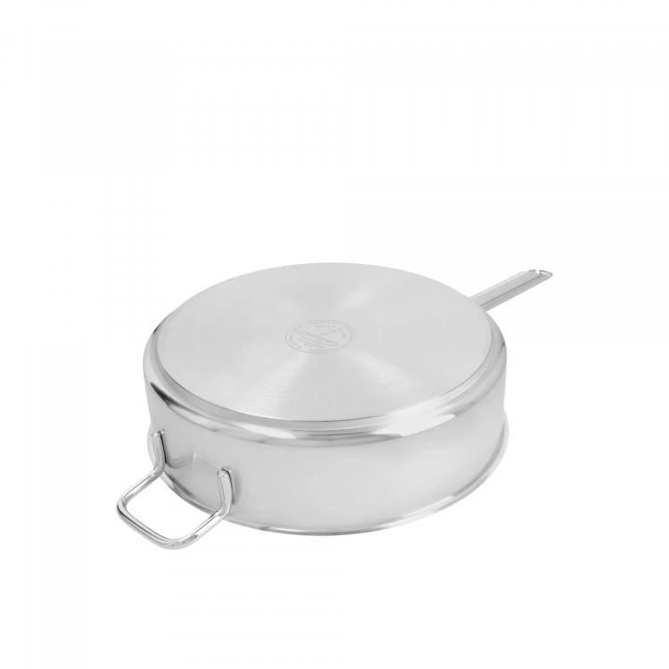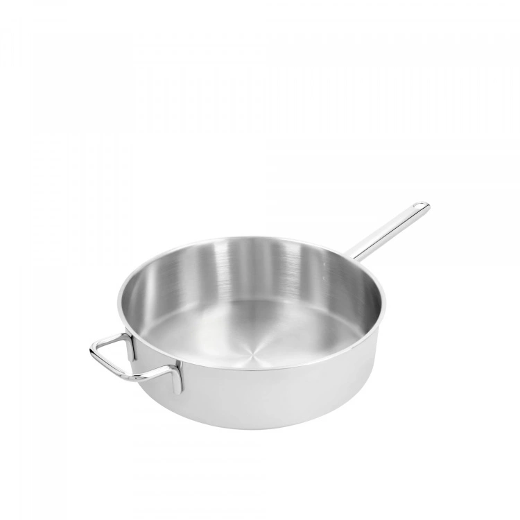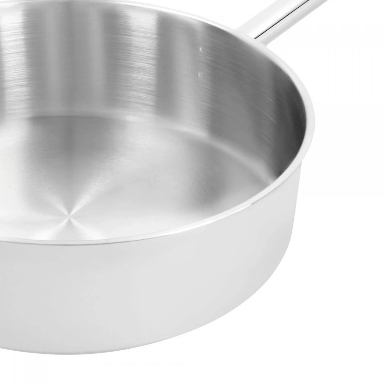 Från varumärket Demeyere kommer Apollo 7 Traktör/Sautépanna utan lock – 28 cm. Denna stekpanna har en InductoBase®-botten med 7 lager aluminium som bidrar till rätt temperatur för respektive råvara. Dessutom garanteras en jämn fördelning av värmen över hela botten. Apollo 7 Traktör/Sautépanna kan användas i ugnen och på alla typer av spisar, inklusive induktionshällar. Tack vare TriplInduc®-teknologin arbetar den till och med ännu effektivare på just induktionsspisar. För att kastrullen utan lock ska hålla längre har det rostfria stålet förädlats med Silvinox®. Detta ger ett bättre skydd för materialet mot smuts eller fingeravtryck och underlättar rengöring. Kastrullens handtag gör den lätt att hantera och för att undvika smuts, fett och bakterier har inga skruvar eller nitar används.