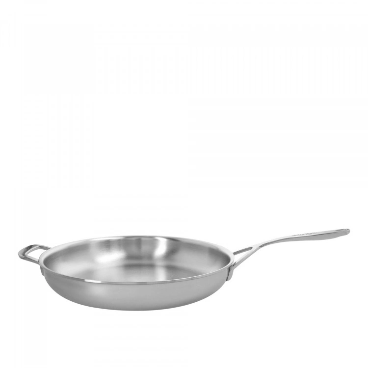 Från varumärket Demeyere kommer Multiline 7 Stekpanna. Pannan är tillverkad i rostfritt stål bestående 7-lager, inklusive en aluminiumkärna innesluten i rostfritt stål som säkerställer optimal värmefördelning över hela ytan upp till kanten. Detta påskyndar inte bara tillagningsprocessen utan är även energisparande. En praktisk hällkant avrundar den funktionella designen. Stekpannan fungerar på alla spisar men är extra passande för induktionsspisar då tillagningen blir 30 % mer energieffektivt tack vare TriplInduc®. Den innovativa processen gör botten särskilt värmeledande. Silvinox®-behandlingen av rostfritt stål gör den enkel att rengöra då fettstänk, fingeravtryck och annan smuts lätt kan avlägsnas och bibehåller den typiska silverglansen av rostfritt stål. Multiline 7 Stekpanna kan även diskas i maskin.