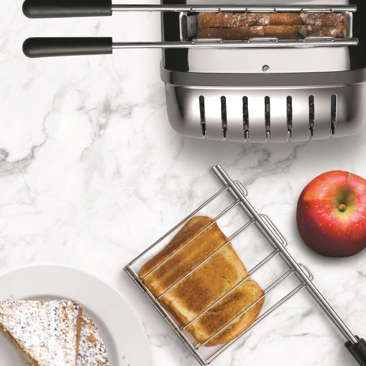 - Justerbar bakre fot som gör att brödrosten står plant.