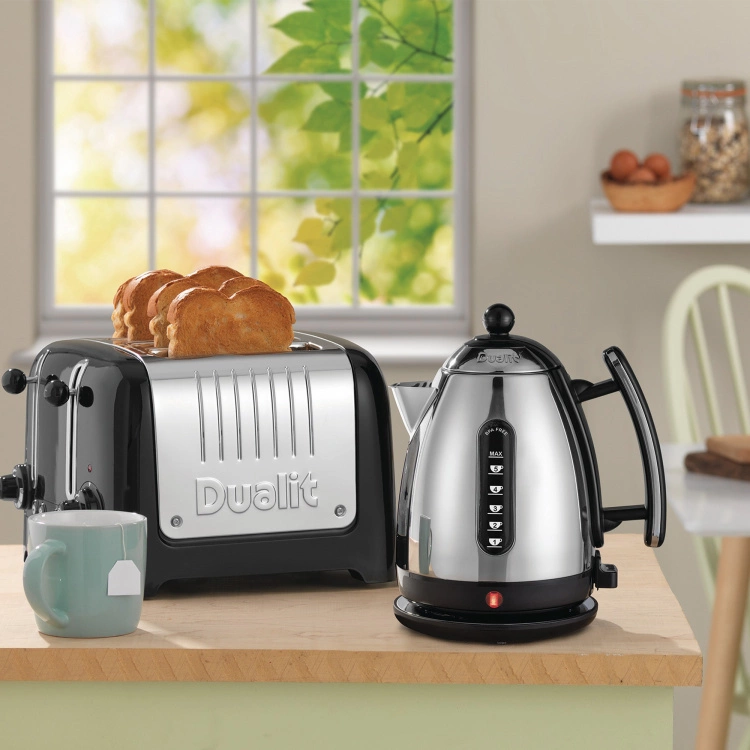Dualit Vattenkokare – Kanna kommer från det brittiska varumärket Dualit. Det är en sladdlös vattenkokare i stilren design. Den är effektiv och tystlåten och har ett ergonomiskt utformat handtag som skyddar mot värme. Dualit Vattenkokare – Kanna har ett lock med en stor värmetålig knopp för att förhindra att du bränner dig när. Ett dolt element värmer vattnet snabbt och har en egen säkerhetsbrytare som förhindrar torrkokning. Med sina 3 kW värmer Dualit Vattenkokare – Kanna snabbt upp vattnet och kannan rymmer 1,5 liter.