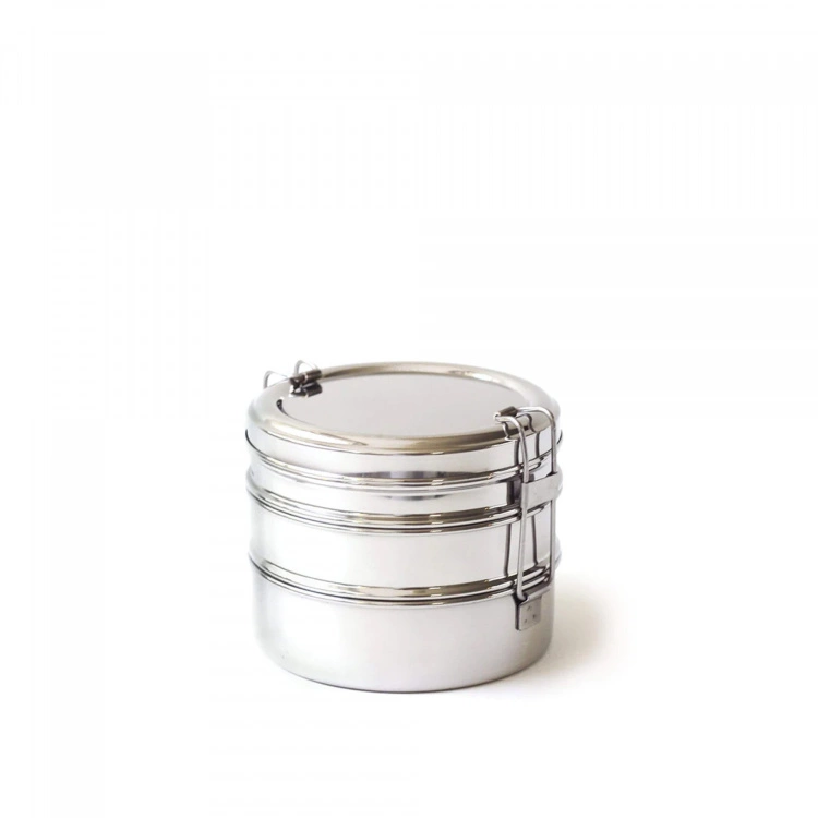 Round Three-Tiered Lunch Box Tri Bento är designad av varumärket från ECOlunchbox. Det är en tredelad rund matlåda med smarta justerbara spännen som håller ihop alla delar. Setet består av två matlådor som rymmer ca 350 ml var samt en större modell som rymmer ca 410 ml. Tillsammans rymmer de tre olika behållarna 1 liter. Matlådorna är tillverkade i rostfritt stål, helt utan plast. Observera att de inte är 100% läckagesäkra så förvara inte vätska i lådorna. De tål att diskas i diskmaskin och bör inte användas i mikrovågsugn, men kan värmas upp i en ugn på medelhög värme eller över ett friluftskök.
