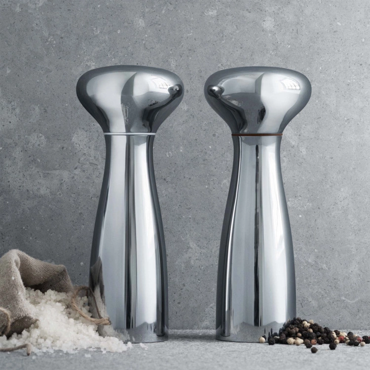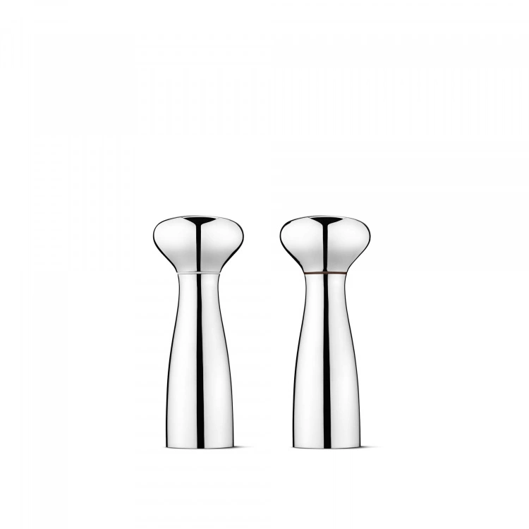 Alfredo Salt & Pepper är designade av Alfredo Häberli för varumärket Georg Jensen. Salt- och pepparkvarnarna är tillverkade i rostfritt stål vilket ger en modern look till köket. Genom att vrida på den gråa skruven nedtill kan du smidigt ställa in kornstorleken. Kvarnarna fylls på genom att lyfta av toppen. Båda är designade med tekniken “AllGrind – Ceramic Technology” vilket säkerhetsställer att produkten är slitstark med hög kvalité. I samma serie finns de mindre kvarnarna Alfredo Salt & Pepper – Small.