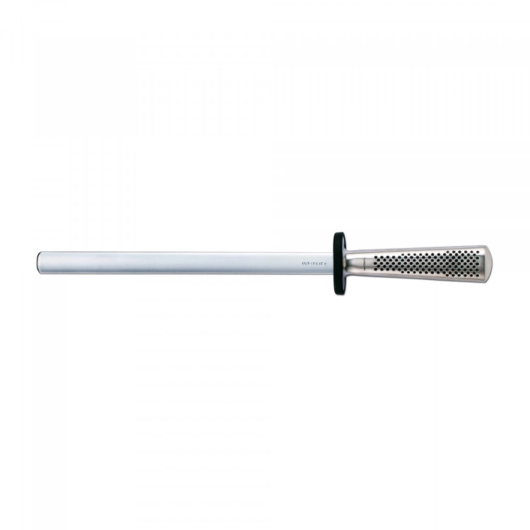 Global G-38/B Diamantskärpstav 26 cm från varumärket Global. Om du vill att din Globalkniv ska bibehålla en skarp egg är det nödvändigt att vässa bladet med jämna mellanrum. Ta hand om din kniv genom att dra den över en skärpstav en gång i månaden. Det finns både keramiska och diamantskärpstavar att tillgå. Diamantskärpstaven är grövre i sin utformning och används, vid behov, före den keramiska skärpstången.