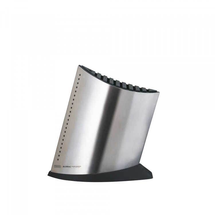 Global GKB-52 Knivblock Rfr 9+1 från varumärket Global. Knivblocket är tillverkat av rostfritt stål i en stilren design. Knivblocket rymmer nio knivar med en bladlängd på upp till 28 cm samt en skärpstav. Förvara dina knivar tryggt och lättillgängligt på arbetsbänken i köket – knivblocket blir ett snyggt och praktiskt attribut. Köksknivar som ligger och skaver mot varandra i en besticklåda riskerar att bli stötta och slöa. Bra knivar förtjänar bra förvaring. Knivblocket finns tillgängligt i vitt, svart och rostfritt utförande.
