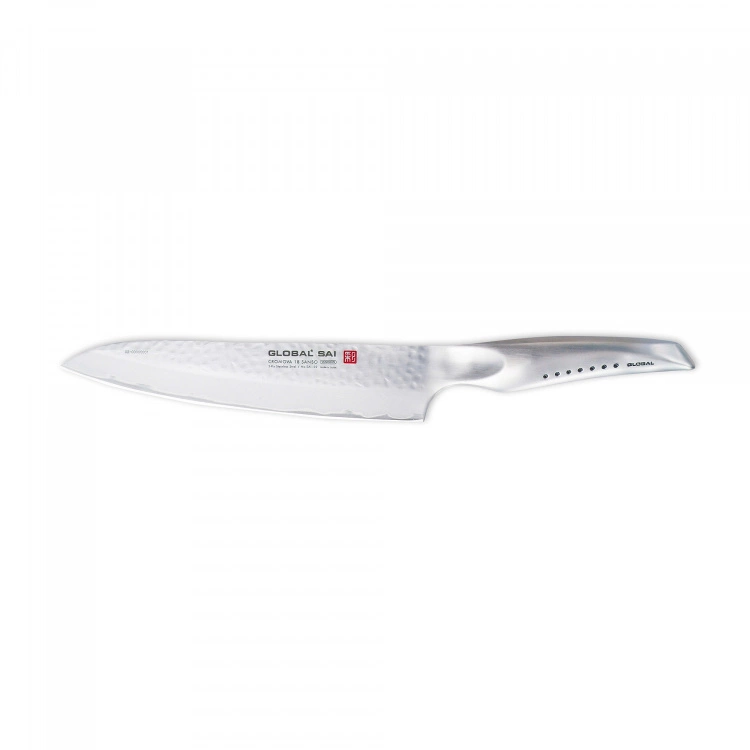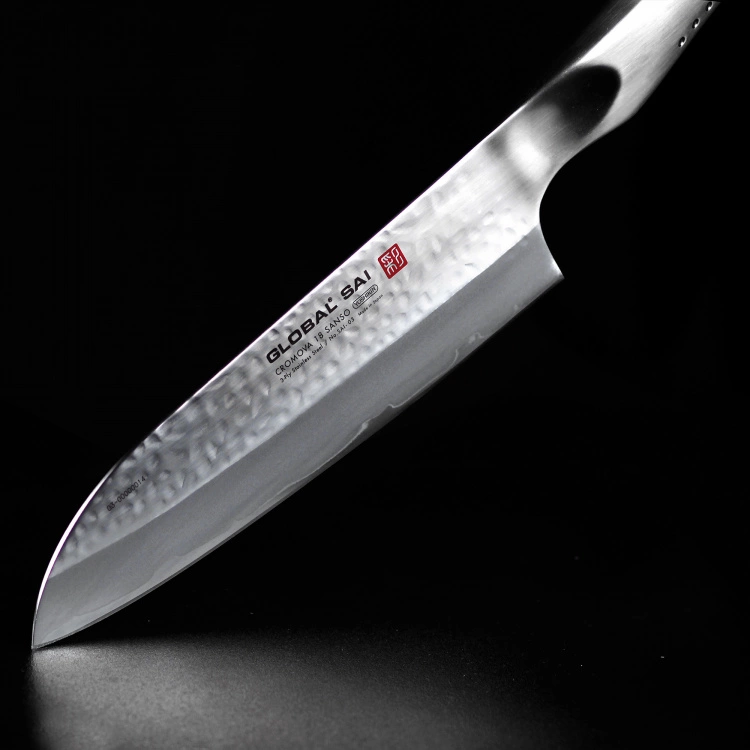 Global Sai lanserades 2012 och är en kollektion med knivar i en vacker hamrad finish. Knivarna har samma starka stålblandning som Globals klassiska serie men är försedd med två extra lager av stål, som ger en rosttålig yta och exceptionellt hårda egg. Knivbladets hamrade yta medför dessutom att ingen kniv är helt den andra lik.