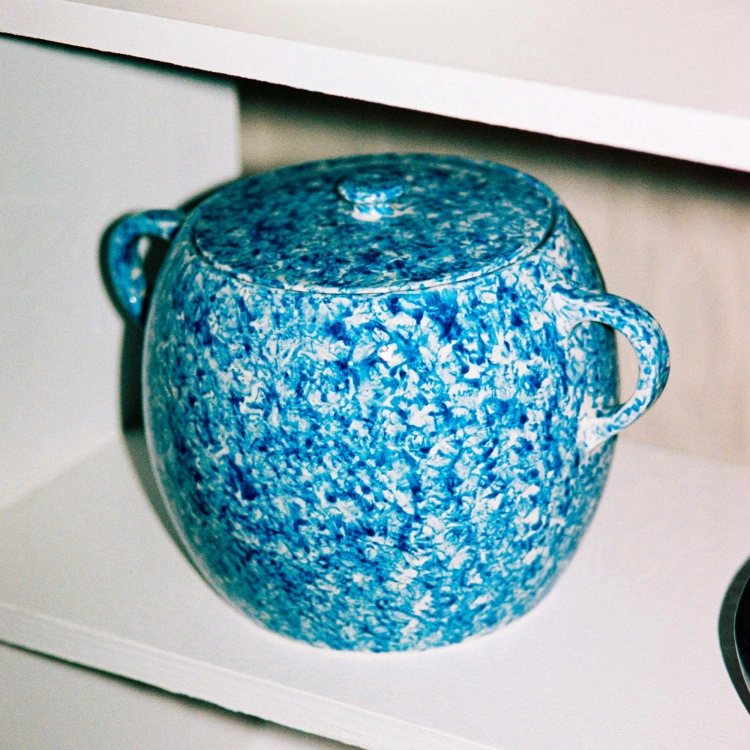 Sobremesa Bean Pot är formgiven av den New York-baserade konstnären Laila Gohar för varumärket HAY. Grytan har ett stilrent och lekfullt designuttryck som tack vare det handmålade dekorativa mönstret lyfter varje maträtt och dukning. Den är multifunktionell och kan användas för såväl matlagning, servering och förvaring. Traditionellt används en bönkruka för att tillaga maträtter med bönor som får koka under lång tid. Sobremesa Bean Pot är därför tillverkad i ugnsfast stengods och tål ugn. Grytan kommer i färgen Blue och rymmer 3 liter.