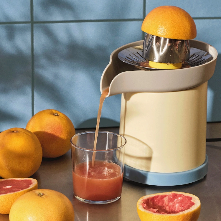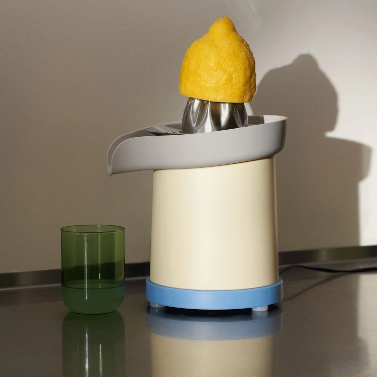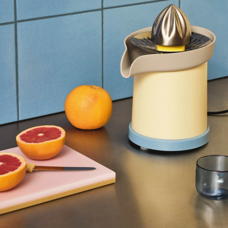 Sowden Juicer – Yellow är en vacker juicepress från det danska varumärket Hay, formgiven av George Sowden. Den moderna juicepressen är tillverkad i rostfritt stål och polypropylen. Med Sowden Juicer kan du pressa färska citrusfrukter som apelsin, grapefruit, citron och göra din egen juice på ett enkelt och stilfullt sätt. När juicepressen inte används till praktiskt bruk är den med sin vackra design och sina iögonfallande färger en lekfull inredningsdetalj till ditt kök.