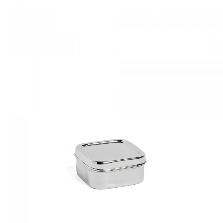 Steel Lunch Box XS – Square är en förvaringslåda från det danska varumärket Hay. Steel Lunch Box XS – Square är tillverkad i vackert och livsmedelssäkert rostfritt stål och är 10 cm bred och 5 cm hög. Den kompakta och praktiska designen gör att förvaringslådan är perfekt till att förvara matsäck eller jobblunch i. Förvara lättare mellanmål, en lunchmåltid eller annan typ av mat i den stilrena Steel Lunch Box XS – Square.