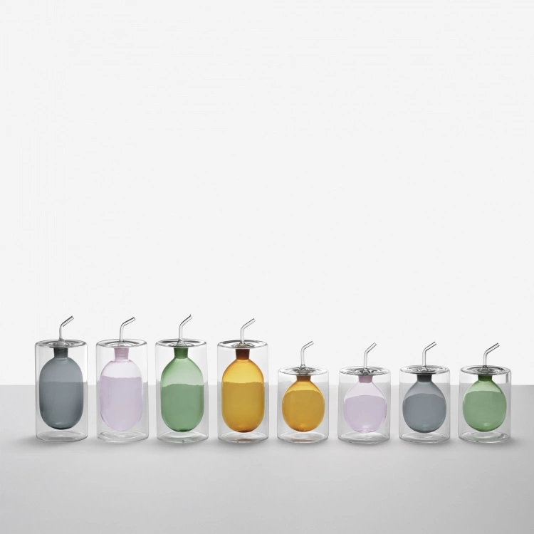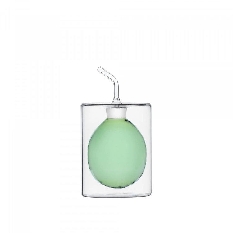 Cilindro Colore Oil Bottle Green – 15 cl är en oljeflaska från varumärket Ichendorf Milano, formgiven av Corrado Dotti. Cilindro Colore Oil Bottle Green har en unik design med två glasväggar, en yttre hållare som omsluter en inre cylinder där själva oljan sedan förvaras. Flaskan är helt och hållet tillverkad av handgjort vackert glas.