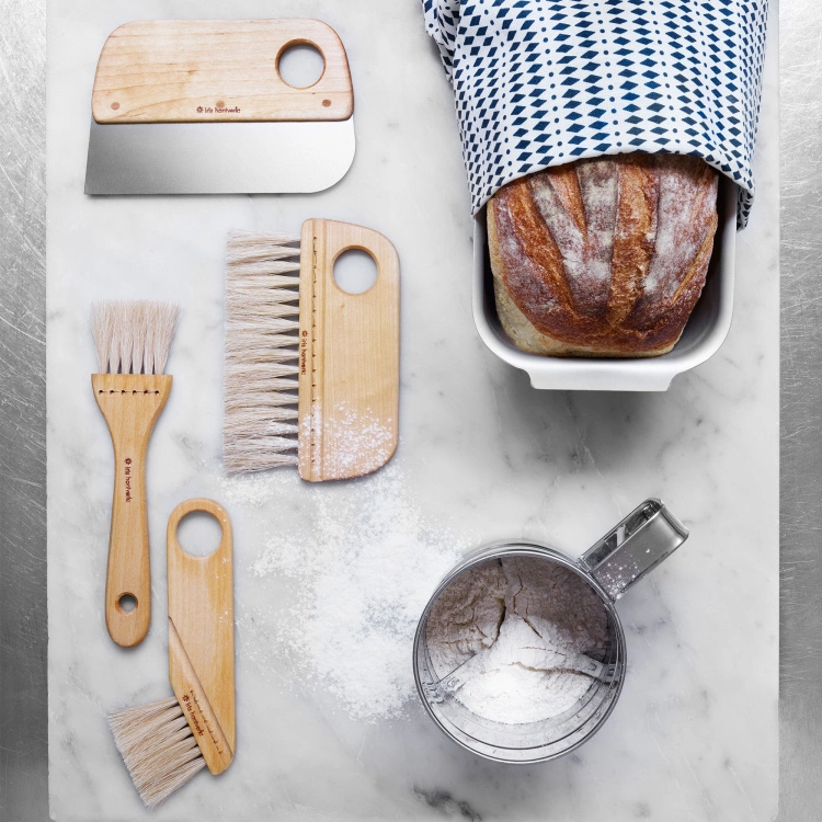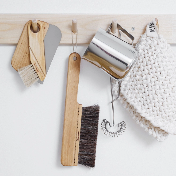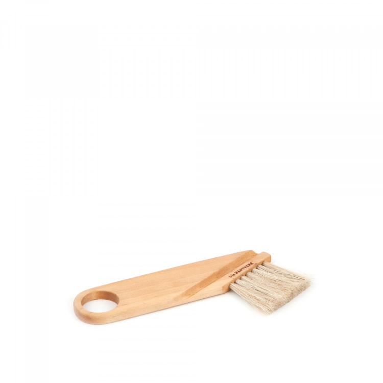 Handgjord brödpensel från det svenska varumärket Iris Hantverk, formgiven av Lovisa Wattman. Brödpenselns handtag är tillverkad i oljad björk och penseln är gjord av tagel. Längs ut på skaftet finns ett praktiskt hål för upphängning. Rengör penseln i varmt vatten med lite diskmedel i. Låt sedan penseln torka med stråna nedåt.