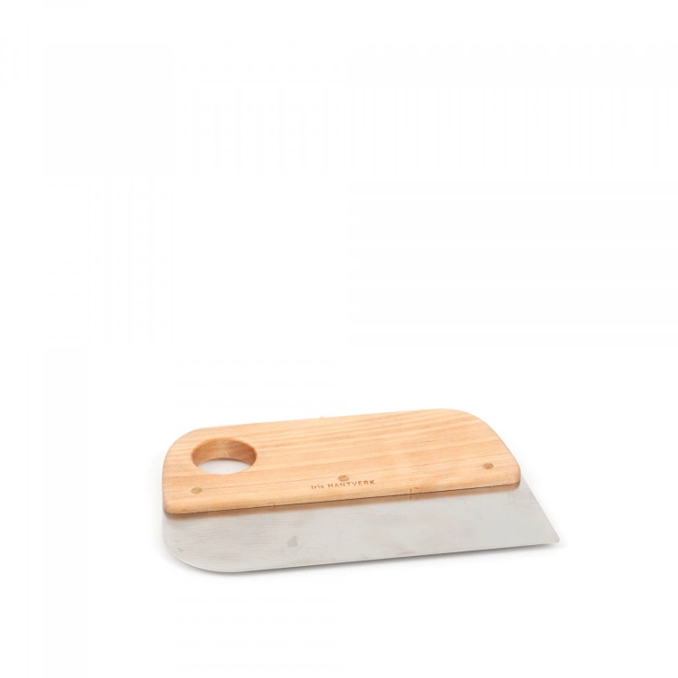 Robust degskrapa från det svenska varumärket Iris Hantverk, formgiven av Lovisa Wattman. Degskrapan är tillverkad av rostfritt stål och har ett rejält handtag i oljad björk. Den här degskrapan gör bakningen enklare, med skrapan kan du fösa ihop deg, forma och dela degen samt skrapa bort degrester från bakbordet. Rengör skrapan direkt efter användning med ljummet vatten och torka sedan av den med en handduk.