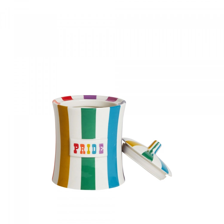 Vice Canister Pride är en förvaringsburk med lock från designföretaget Jonathan Adler som specialiserar sig på att skapa lyxig och funktionell interiör vilket är synonymt med amerikansk glamour. Burken ingår i serien Vice där du hittar flera olika varianter i andra färger och storlekar att kombinera med. Förvara dina småsaker och godsaker stilfullt i denna härliga förvaringsburk samtidigt som du tillför en elegant och lekfull detalj till ditt hem.