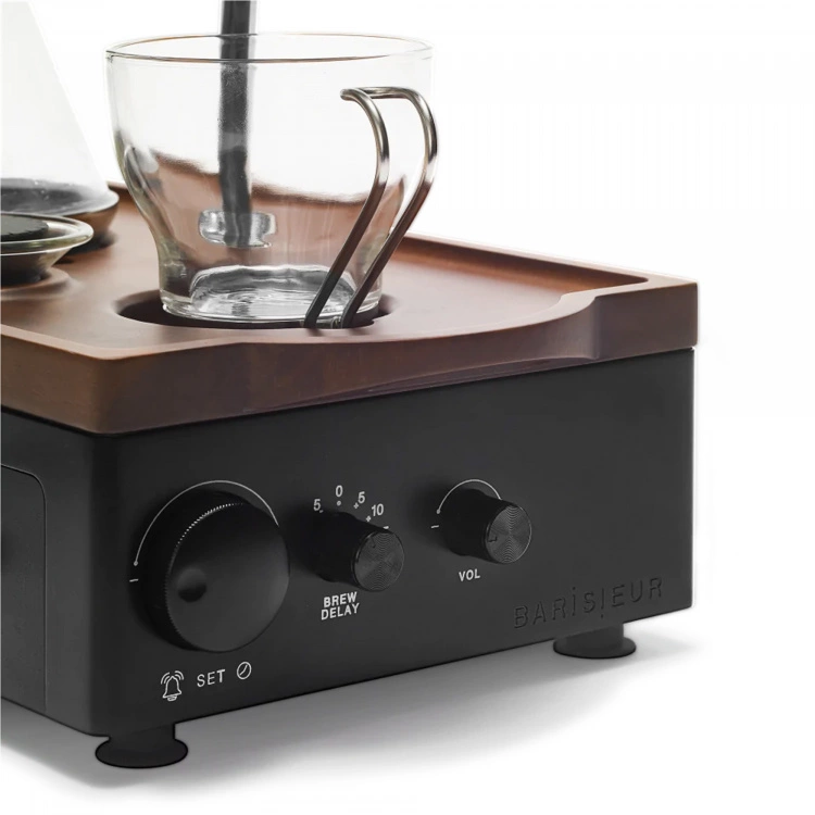 Barisieur från det brittiska varumärket Joy Resolve. Sätt igång dagen med det subtila ljudet av kokande vatten och den behagliga doften av nybryggt utsökt kaffe eller te. Denna bryggare med väckarklocka har förmågan att brygga färskt kaffe eller te varje morgon när du vaknar. Inställningen 94 °C säkerställer att dryckerna bryggs till perfektion utan att bli överhettade, vilket garanterar intensiv smak i varje kopp. Barisieur har en praktisk låda som är inbyggd i basen. Lådan är utformad för att rymma malet kaffe eller te, tillräckligt för att räcka en vecka. Lådans lock innehåller också en skopa i rostfritt stål med en kapacitet på 5 gram, vilket gör det enkelt att mäta den perfekta mängden för din dryck.