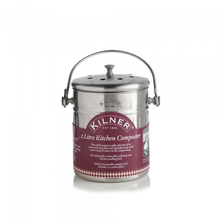 Från varumärket Kilner kommer Kilner Compost Bin. Denna nätta kompost består av rostfria, 2 liters kökskomposter som är tillverkade av hållbara material. Komposten har ett handtag som är enkelt att greppa och innehåller två kolfilter. Kilner Kilner Compost Bin är perfekt för grönsaks och fruktrester. Tack vare de utbytbara kolfiltren blir det ingen otrevlig lukt i köket. Komposten går utmärkt att även använda till mindre trädgårdsavfall. Dess retrodesign och fina detaljer gör att den gärna kan stå framme i köket.