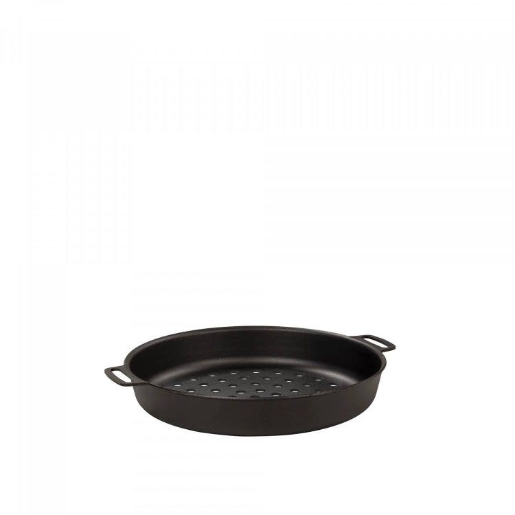 Perforerad form från det svenska varumärket Kockums Jernverk. Formen är tillverkad av kolstål och har perforering i botten vilket gör att ånga vid bakning av exempelvis bröd kan cirkulera fritt. Formen är även idealisk att placera på grillen och gör att grönsaker, fisk och mindre köttbitar inte faller igenom grillgallret. Dessutom får maten en krispig grillyta och god röksmak. De mindre handtagen på formen gör den enkel att placera i ugnen och på grillen.