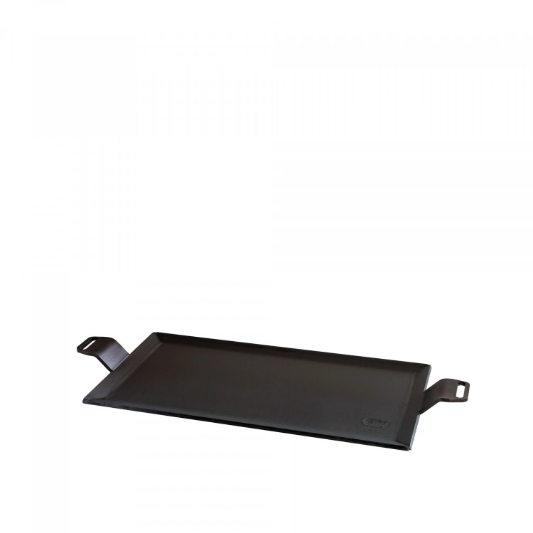 Svensktillverkat stekbord från varumärket Kockums Jernverk. Stekbordet är tillverkat av 4 mm kolstål och förinbränt med vegetabiliska oljor så att du kan börja använda det direkt. Stekbordet kan användas på alla typer av värmekällor och grillen. Ytterkanterna är svetsade och lätt vinklade så att fett och vätska inte ska kunna rinna ut. Stekbordet har robusta handtag och går enkelt att lyfta fram direkt till bordet för servering. Använd stekbordet på grillen eller induktionshäll och stek dina favoritgrönsaker, kött eller smashade hamburgare.