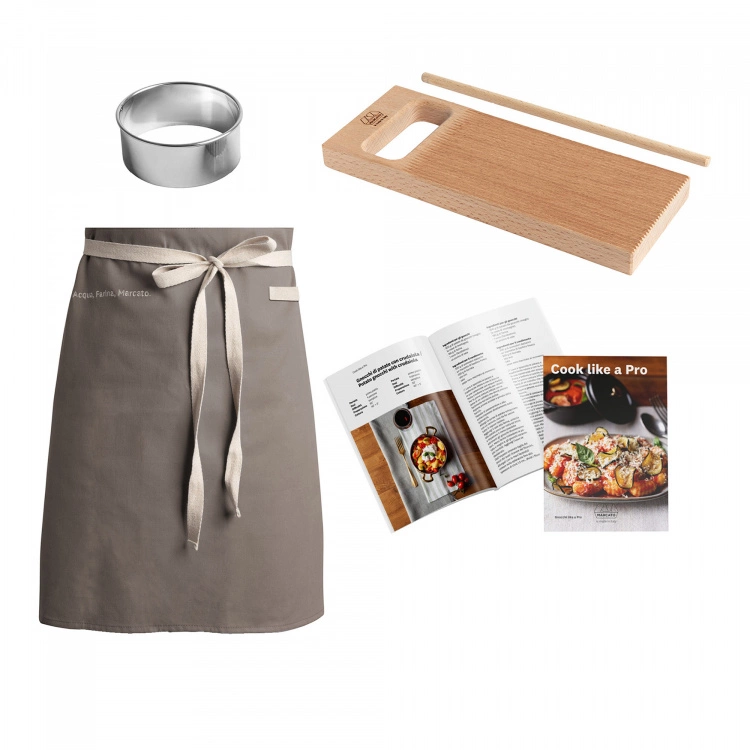 Gnocchi Like a Pro-set från varumärket Marcato. Att göra goda, hemlagade gnocchi har aldrig varit enklare. Med det här setet kan du göra denna traditionella italienska rätt och bli en expert på gnocchi på nolltid. Setet innehåller allt du behöver för att göra fantastiska gnocchi-rätter: en bräda, en gnocchi-ring, ett förkläde och till och med en kokbok så att du har alla recept du någonsin kan önska dig. Nu kan vem som helst tack vare det här setet komma in i gnocchins fantastiska värld och göra alla sina favoriträtter.
