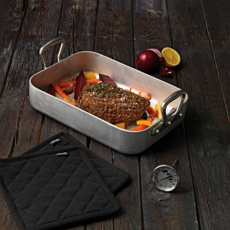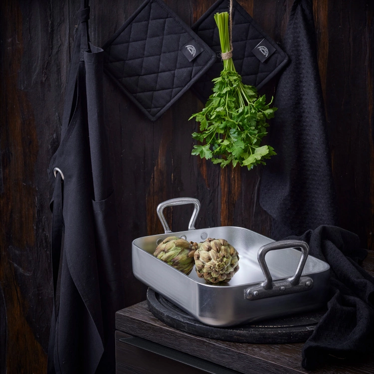 Roasting Pan Cook Style Steel är formgiven av det franska familjeföretaget Mauviel. Den rejäla ugnspannan är ett mycket användbart redskap i köket. Perfekt för såväl kött som gratänger och desserter. Tack vare materialvalet av tjock aluminium så har pannan en jämn värmefördelning. Tack vare den elegant blankpolerade ytan får ugnspannan ett stilrent och tidlöst uttryck. Ugnpannan fungerar med alla typer av värmekällor förutom induktionshällar. Utöver denna ugnspanna erbjuder vi flera andra pannor i olika storlekar från samma varumärke.