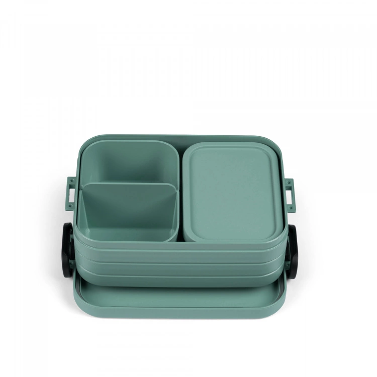 Bento Lunch Box Take A Break – Nordic Green är formgiven av varumärket Mepal. Matlådan har en praktiskt och stilren design som smidigt håller maten fräsch. Perfekt när du ska ta med dig lunch till jobbet eller utflykten. Tack vare separata delar blandas inte maten, utan kan med enkelhet separeras. Förslagsvis så kan du förvara sallad i en del, sås i en annan och mat som ska värmas upp i en tredje. Med matlådan medföljer även en liten gaffel. Det går utmärkt att värma matlådan utan lock i mikrovågsugn och att diska i diskmaskin. Den är lufttätsförsluten, rymmer 900 ml och tillverkad i plast. Bento Lunch Box Take A Break kommer i flera lekfulla färger som finns att köpa hos oss.