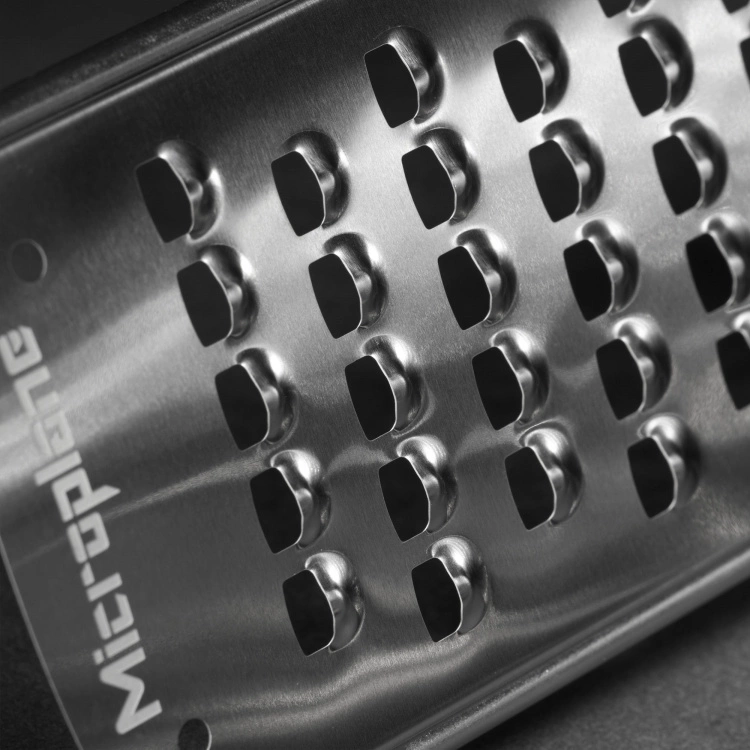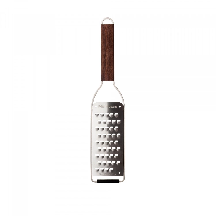 Master Series Rivjärn Extra Grov från varumärket Microplane. Rivjärnet har en extra grov yta som skär, inte river, råvaran i extra långa skivor med effektivitet och utan ansträngning. Passar utmärkt till mjuka och hårda ostar, potatis, äpplen, kål, zucchini, morötter, lök, choklad och mycket mer. Förhöjer varje rätt och låter smak och arom utvecklas med stor varsamhet för råvaran.