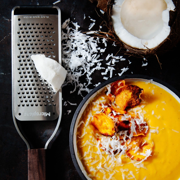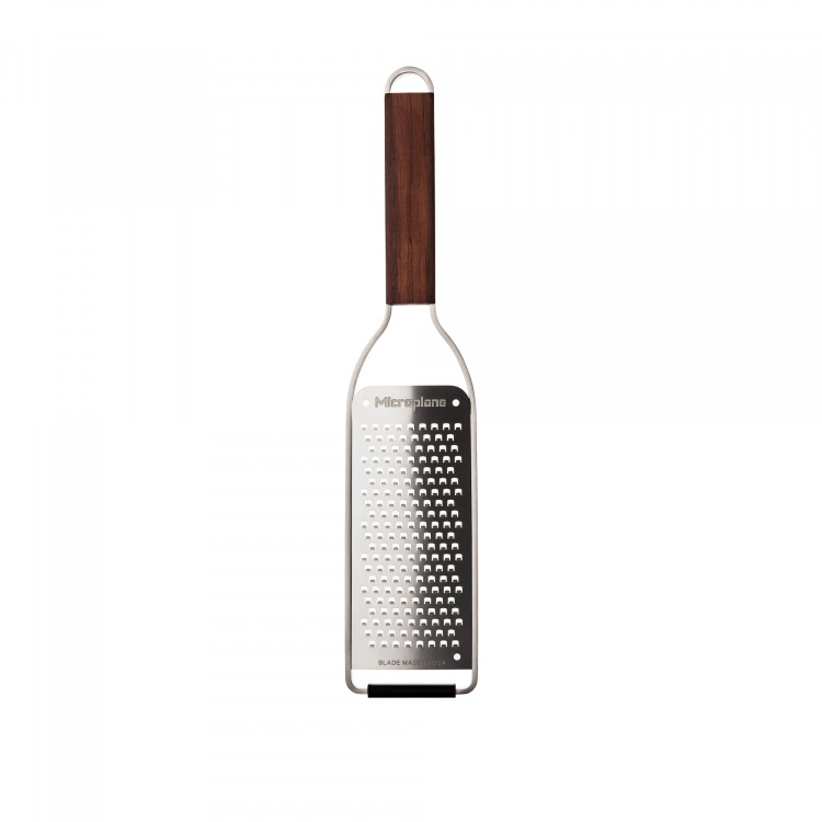 Master Series Rivjärn Grov från varumärket Microplane. Zestjärnet har en grov yta som passar utmärkt till ost, morötter, ingefära, vitlök, kokosnötter med mera. Råvarorna skärs, inte rivs, på ett effektivt och varsamt sätt för att utvinna smak och arom på bästa sätt.