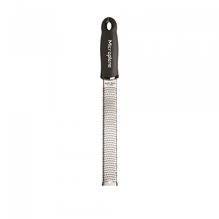 Premium Classic Zester – Svart från varumärket Microplane. Zestjärnet är företagets ursprungliga, ikoniska modell som har blivit mycket uppskattat av professionella kockar och hemmakockar runt om i världen tack vare sin exakta rivning utan ansträngning. Zestjärnet är långsmalt med ultraskarpa, etsade blad i rostfritt stål. Försedd med ett ergonomiskt soft touch-handtag för hög komfort och ett säkert grepp.