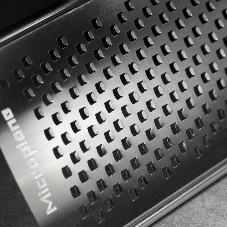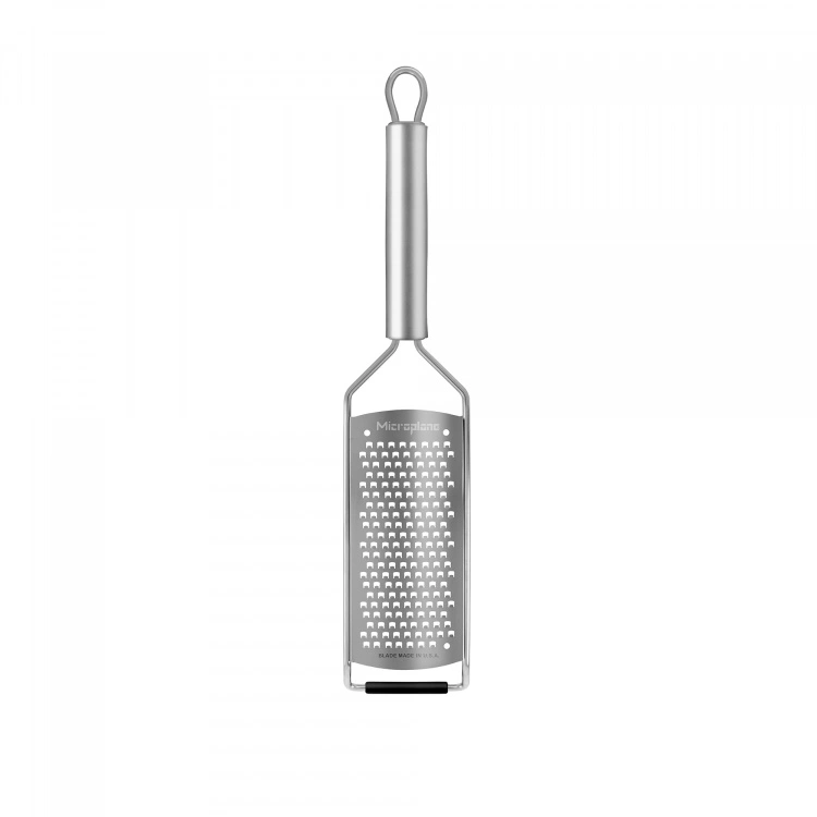 Professional Series Rivjärn Grov från varumärket Microplane. Rivjärnet har ett grovt blad som lämpar sig utmärkt till ost, morötter, vitlök, ingefära, kokos, lök med mera. Det grova bladet ger en snabbare och större mängd än ett fint blad, men fortfarande med precision och varsamhet.