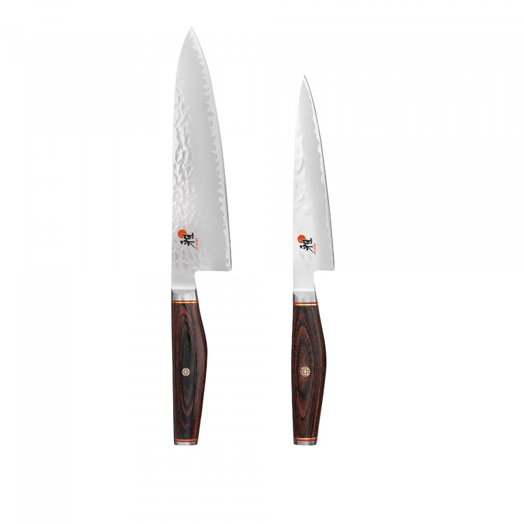 Artisan 6000MCT Knife Set 2-PC från det japanska varumärket Miyabi är ett set innefattandes av två knivar: en skalkniv, Shotoh – 13 cm, och en kockkniv, Gyutoh – 20 cm, från kollektionen Artisan 6000MCT. Knivsetet är elegant och sylvasst, perfekt för att skala, skära och hacka olika råvaror med lätthet och stor precision.