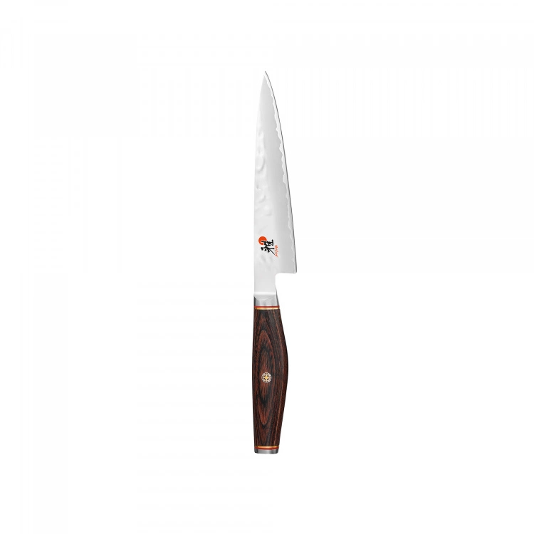 Artisan 6000MCT Shotoh – 13 cm från det japanska varumärket Miyabi. Kniven har en bladlängd på 13 cm och är därmed en mindre variant av en kockkniv men en större variant av en skalkniv. Artisan 6000MCT Shotoh – 13 cm är en perfekt allroundkniv, även kallad kompakt kockkniv, då den mindre storleken ger dig möjlighet till större precision. Perfekt att både hacka, skala och skära de flesta råvaror med. Det tunna knivbladet hanterar råvarorna med stor varsamhet.
