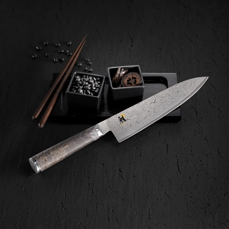 Kniven är tillverkad med högteknologisk teknik, MC66-stål (förädlat SG2-stål) har mikrokarbidpulveriserats och CRYODUR® ishärdats till imponerande 66 HCR. Resultatet är en exceptionell hårdhet och hållbarhet. Bladet har 132 lager av rostfritt stål som har slipats enligt den traditionella trestegsmetoden Honbazuke, där varje steg ökar skärpan och dessutom ger ett vackert blommigt damaskusmönster som är unik för varje kniv. Slipvinkeln är 19°. Handtaget är ett traditionellt japanskt D-handtag, tillverkat av vacker svart lönn. Livstidsgaranti på material och produktionsfel.