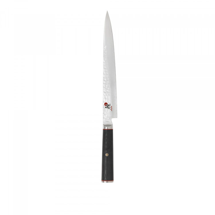 Mizu 5000MCT Sujihiki – 24 cm är en filékniv från det japanska varumärket Miyabi. Kniven har en bladlängd på 24 cm med en sylvass skärpa som är perfekt för att filea och bena ur fisk eller putsa och skära tunna skivor av kött. Det tunna knivbladet hanterar råvarorna med stor varsamhet.