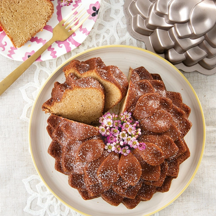 Blossom Blundt Pan är en elegant bronsfärgad bakform som är inspirerad av vackra blommor från Nordic Ware. Bakformens blad ger en fin effekt med sina former och gör den perfekt att baka eleganta bakverk i. För ett fint resultat på bakverket kan man avsluta med att lägga florsocker på efter att den har svalnat.