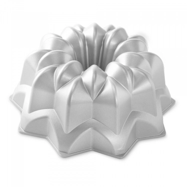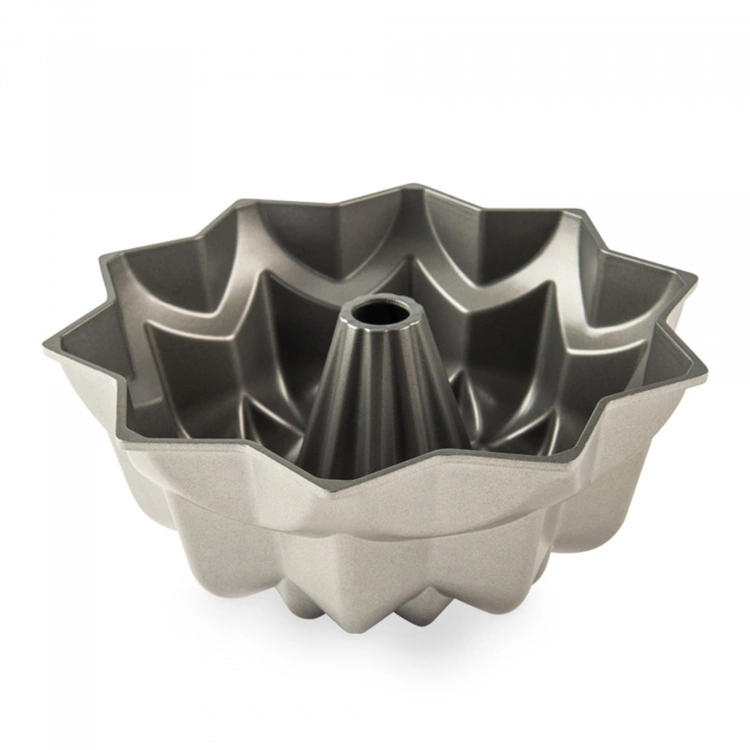 Baka en vacker kaka i en silver stjärnformade Vintage Star Bundt Pan från det amerikanska varumärket Nordic Ware. Bakformen är tillverkad av gjuten aluminium med en non-stickbeläggning. Beläggningen gör att kakan lättare släpper bakformen och inte går sönder. Perfekt när du vill baka och servera en vacker kaka till dina gäster. Vintage Star Bundt Pan har en non-stickbeläggning som hjälper kakan att bli jämnt gräddad. Låt det färdiga bakverket vila i formen under 10 minuter efter gräddning för att sedan vända upp och ner på formen för att enkelt få ut kakan. Vintage Star Bundt Pan rekommenderas att handdiskas för bästa hållbarhet. Metallredskap bör undvikas för att inte skada non-stickbeläggningen.