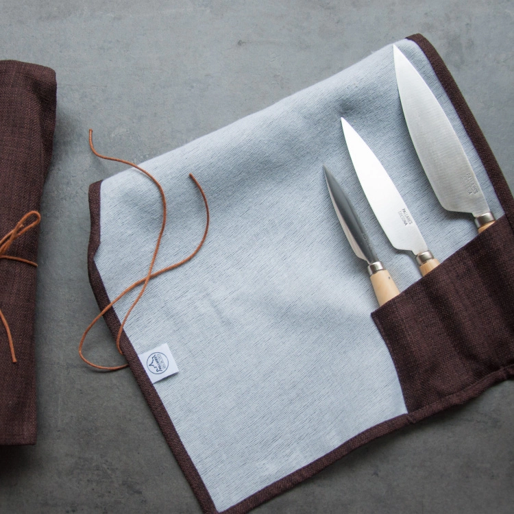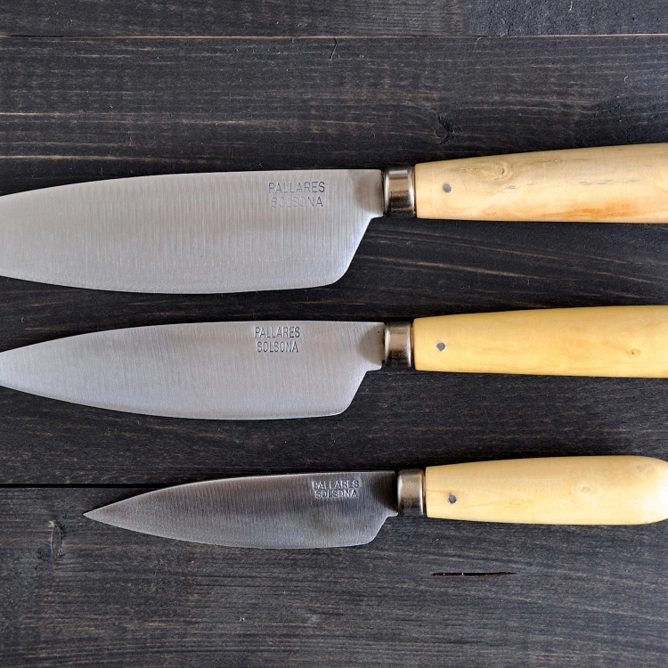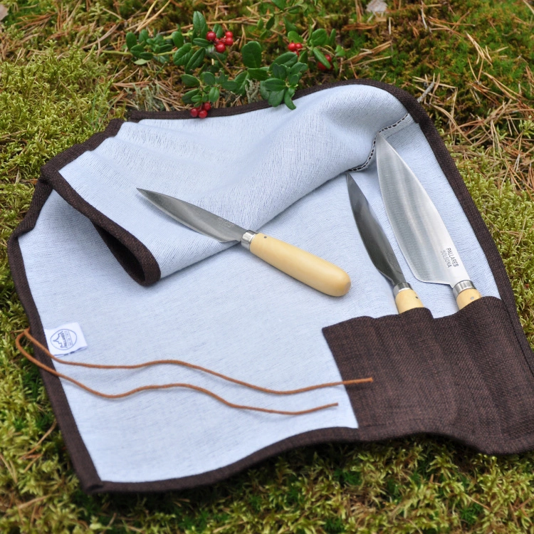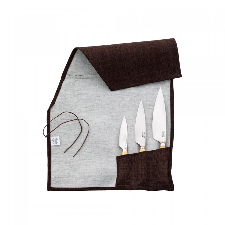 Traditionella Köksknivar Kolstål – Brunt Set är designat av det spanska varumärket Pallarès. Setet består av tre köksknivar i tre olika storlekar (9 cm, 13 cm och 16 cm) och ett praktiskt knivfodral i tyg. Pallarès skickliga knivmakare har skapat dessa handgjorda köksknivar i generationer och än idag tillverkas de på samma sätt som de gjorde för 100 år sedan. Knivbladen är lagerbladsformade och tillverkade i kolstål. Handtagen är gjorda i buxbom. Det bruna knivfodralet sys upp i Stockholm och är framtaget av Cook’n Bloom. Köksknivar finns även att köpa separat hos oss på Nordiska Galleriet.