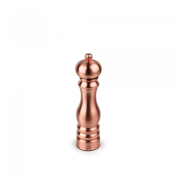 Paris Chef Pepper Mill – Copper från det franska varumärket Peugeot är det perfekta redskapet i alla kök. Oavsett om du är en professionell kock eller en ambitiös hemmakock kommer den här stilrena pepparkvarnen med sin ikoniska form att uppfylla alla dina behov. Peugeot-kvarnar är betrodda av kockar runt om i hela världen, och denna Paris-kollektion är inget undantag. Med sin enkla design och klassiska finish i rostfritt stål kommer den garanterat att skapa en sofistikerad look till köket och matbordet. Tack vare det praktiska u’Select-systemet med sex olika malningsinställningar maler du enkelt korn i önskad storlek. Vrid endast och skapa en exakt smakbalans från extra fina korn till mycket grova. Pepparkvarnen är perfekt för att mala svart, vit, grön och röd peppar, rosa pepparkorn (högst 15 % i en pepparblandning) och korianderfrön. Kvarnen kommer delvis fylld med pepparkorn och är därför redo att användas direkt.