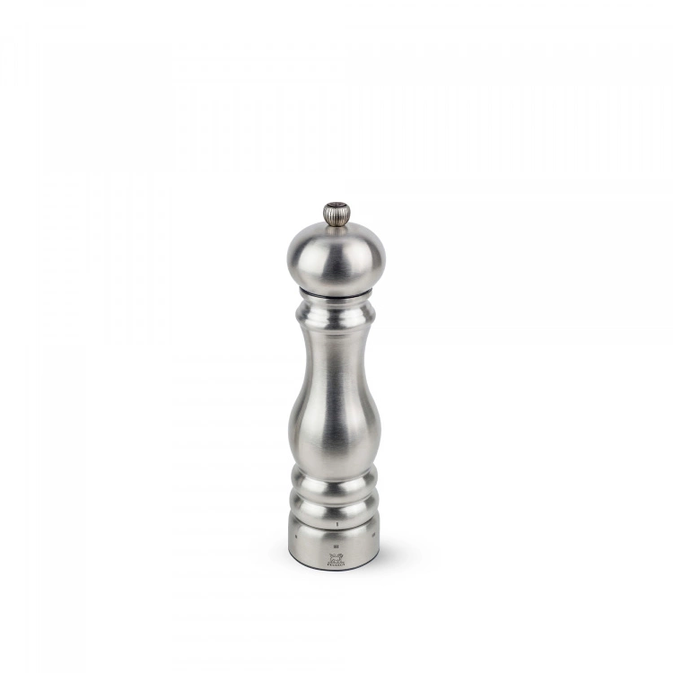 Paris Chef Pepper Mill – Stainless Steel från det franska varumärket Peugeot är det perfekta redskapet i alla kök. Oavsett om du är en professionell kock eller en ambitiös hemmakock kommer den här stilrena pepparkvarnen med sin ikoniska form att uppfylla alla dina behov. Peugeot-kvarnar är betrodda av kockar runt om i hela världen, och denna Paris-kollektion är inget undantag. Med sin enkla design och klassiska finish i rostfritt stål kommer den garanterat att skapa en sofistikerad look till köket och matbordet. Tack vare det praktiska u’Select-systemet med sex olika malningsinställningar maler du enkelt korn i önskad storlek. Vrid endast och skapa en exakt smakbalans från extra fina korn till mycket grova. Pepparkvarnen är perfekt för att mala svart, vit, grön och röd peppar, rosa pepparkorn (högst 15 % i en pepparblandning) och korianderfrön. Kvarnen kommer delvis fylld med pepparkorn och är därför redo att användas direkt.