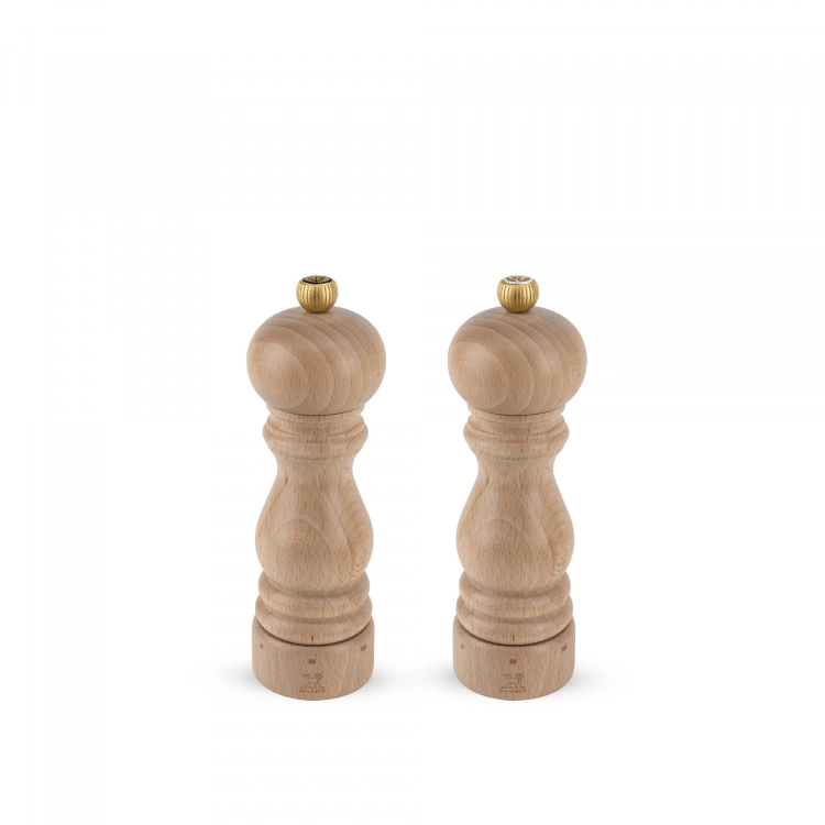 Paris U’Select Duo Salt & Pepper Mill – Natural är formgivna av Peugeot. Setet kommer från den klassiska Paris-serien och består av en saltkvarn och en pepparkvarn. Med en höjd på 18 cm är de smidiga att använda både vid middagsbordet och i köket under matlagningen. Tack vare det unika kvarnverket är det enkelt att ställa in storlek på kornen efter smak. Kvarnduon är tillverkade i trä samt metall och kommer garanterat att vara effektiva och ofta använda köksprodukter i ditt hem. Utöver denna modell erbjuder vi även flera andra stilrena kvarnar från Peugeot.