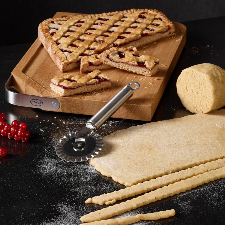 Rösle Brödsporre/Pastasporre från Rösle är det perfekta sättet att lägga till en touch av flärd till dina pastarätter eller bakverk. Med sin konstruktion i rostfritt stål är verktyget byggt för att hålla länge. Sporrens unika design gör att du enkelt kan skära deg eller pasta på ett dekorativt sätt. Oavsett om du vill imponera på dina gäster eller bara lägga till lite personlighet till din måltid är Rösle Brödsporre/Pastasporre ett utmärkt val. Verktygen kan diskas i maskin.