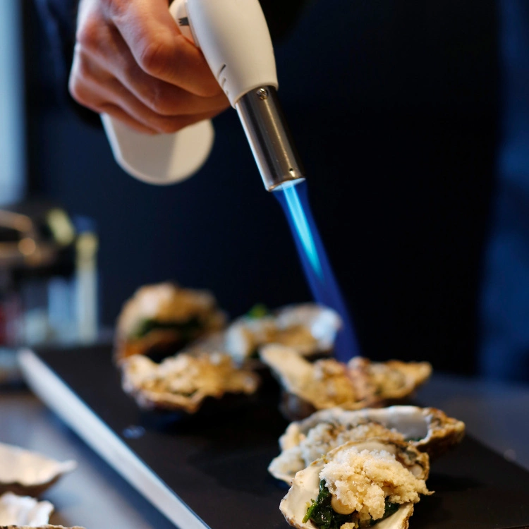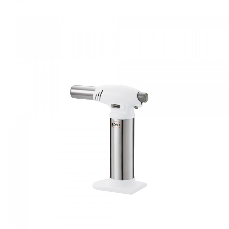 Gasbrännare från tyska varumärket Rösle. Köksvertyget är perfekt för bland annat créme brûlée, potatismos, maränger och andra rätter. Gasbrännaren har en justerbar flamkontroll upp till 1300 °C och du kan du använda den i upp till 60 minuter åt gången. Den fungerar också utmärkt för att tända grillar, marshmallows och eldstäder. Brännaren är utrustad med en barnsäker kontroll för extra säkerhet. Den är tillverkad av rostfritt stål 18/10 och ABS-plast och är hållbar och byggd för att hålla länge. Med en höjd på bara 17 cm är den lätt att förvara när du inte längre använder den.