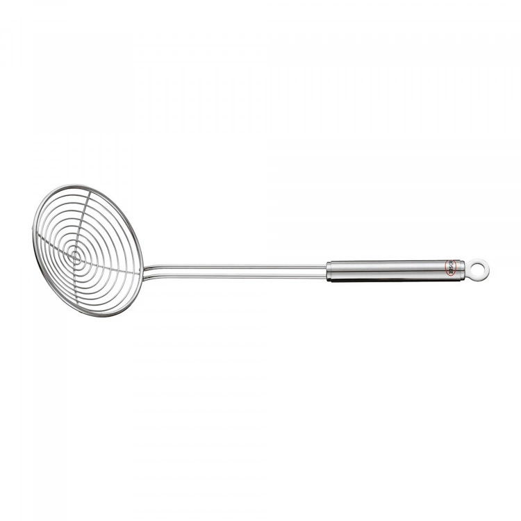 Från varumärket Rösle kommer Trådsked/Frityrsked Ø 12 cm. Skeden är ett perfekt verktyg vid fritering med ett ergonomiskt handtag för att säkerställa komfort och enkel hantering. Tillverkad i rostfritt stål är den hållbar och lätt att underhålla. Tack vare dess design med trådslinga och ett brett avstånd mellan trådarna kan du räkna med att snabbt dränera bort alla oönskade vätskor för krispig och läcker friterad mat varje gång. Skeden passar även utmärkt för kokning av grönskaker. Rösle Trådsked/Frityrsked Ø 12 cm kan diskas i maskin.