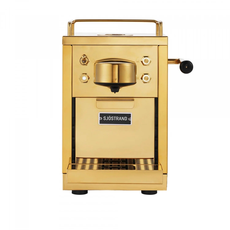 Sjöstrand Espresso Capsule Machine – Brass är designad av varumärket Sjöstrand Coffee Concept. Espressomaskinen är en utveckling av en modern klassiker, formgiven i rostfritt stål med en mässingbehandling, spegelblank finish och raka linjer. Den är ett resultat av en perfekt kombination av skandinaviskt, minimaliskt formspråk och italiensk kaffekultur. Espressomaskinen har en högtryckspump på 19 bar och tillsammans med vatten i rätt temperatur så skapas kaffe med en perfekt smakbalans. Sjöstrand Espresso Capsule Machine – Brass passar med alla Sjöstrands kapslar och samtliga kapslar inom Nespresso standardsystemet.