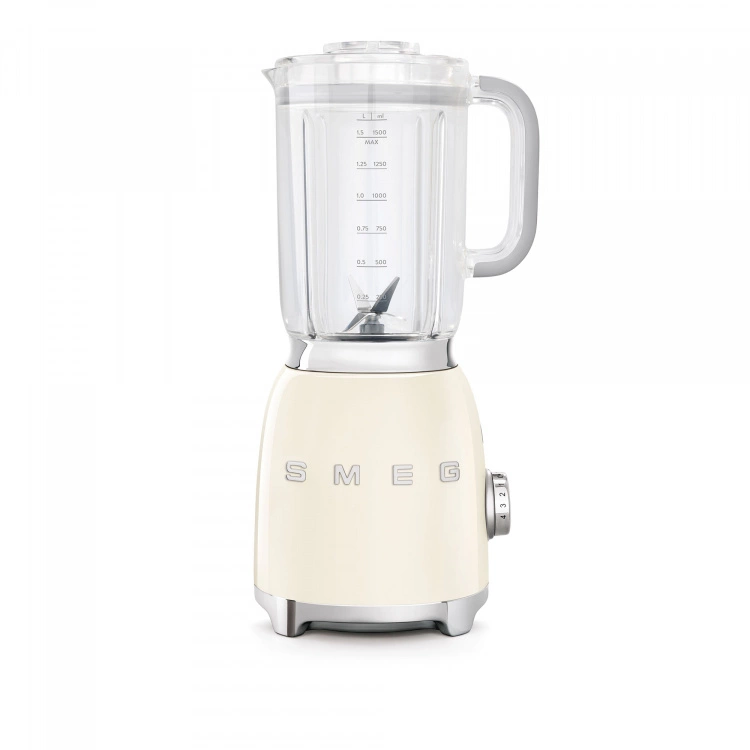 Smeg Blender Creme är en prisbelönt mixer som ingår i den populära retroserien med 50-talsstil från Smeg. Blendern har en formpressad aluminiumkropp och en Tritan-kanna med en smidig 45 ml mätbägare i locket vilken även fungerar som en nyckel för att avlägsna knivbladen vid rengöring. Smeg Blender Creme har en effektiv motor som enkelt krossar frusen frukt, is och nötter. 4 hastigheter med soft start och pulsfunktion, samt förinställda program för att iskross och smoothies. Blendern har ett inbyggt säkerhetsstopp när kannan avlägsnas eller vid överbelastning. Inbyggd sladdvinda samt gummitassar som gör att maskinen står stadigt. Smeg Blender finns i sju olika färger.